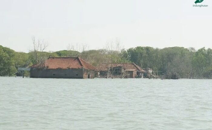 Dalam dua dekade terakhir, lebih dari 200 bangunan di desa ini lenyap diterjang laut. Jalanan yang dulu menghubungkan kampung-kampung kini berubah menjadi hamparan air asin. Kondisi ini diperparah oleh banyaknya sampah plastik yang menumpuk di sekitar akar mangrove, mengganggu pertumbuhan tanaman sekaligus menghambat proses penyerapan karbon alami.