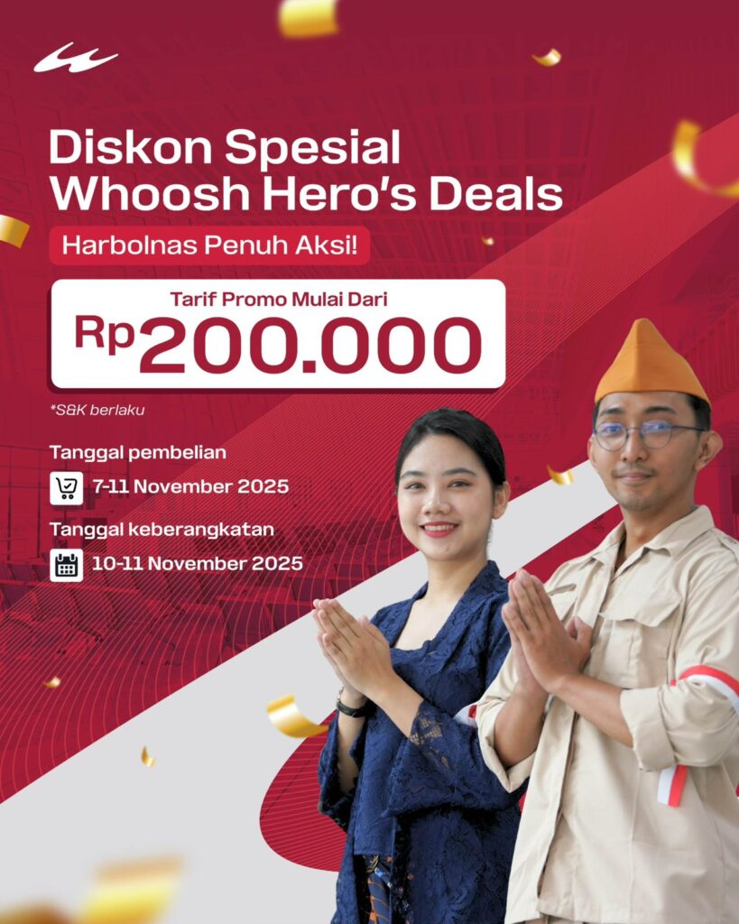 Dengan harga mulai Rp200 ribu, promo Whoosh Hero’s Deal menjadi kesempatan terbaik bagi masyarakat untuk menikmati kereta cepat pertama di Indonesia dengan tarif hemat. KCIC berharap program ini dapat meningkatkan minat masyarakat dalam memanfaatkan transportasi publik modern sekaligus merayakan semangat kepahlawanan dan era digital. (Hero)