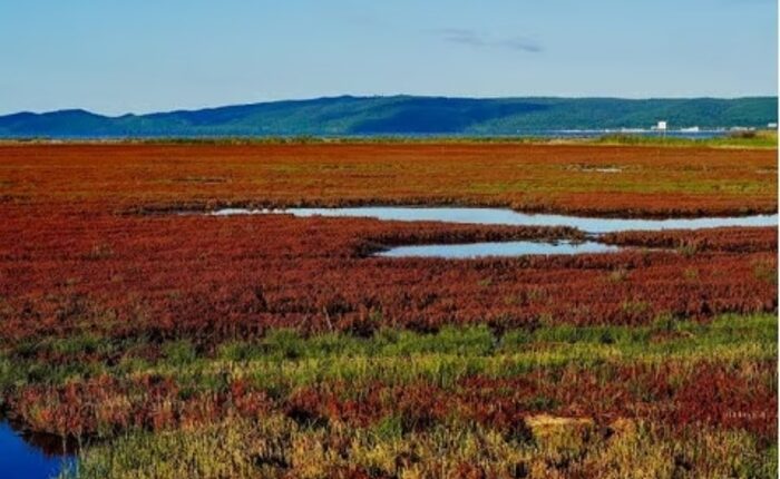 Di tepi Danau Notoro di Abashiri, Anda dapat menyaksikan fenomena langka yang disebut “rumput musim gugur.” Saat musim gugur, rumput karang berubah warna menjadi merah tua, menciptakan lanskap menakjubkan yang menyerupai hamparan karpet merah di atas tanah. Ini merupakan pemandangan musim gugur yang sangat khas dan mencolok, berbeda dari warna-warni daun pada pepohonan.
