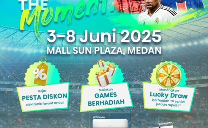 Jakarta, 5 Juni 2025 – Hisense brand global elektronik dan peralatan rumah tangga di awal bulan Juni ini berkesempatan menyapa warga Medan. Mengusung pameran bertajuk Hisense OWN THE MOMENT yang bertempat di Main Atrium Hall, Lantai GF, Sun Plaza Medan pada 3-8 Juni 2025, Hisense hadirkan line-up produk terbaik dan promo menarik khusus untuk masyarakat Medan.